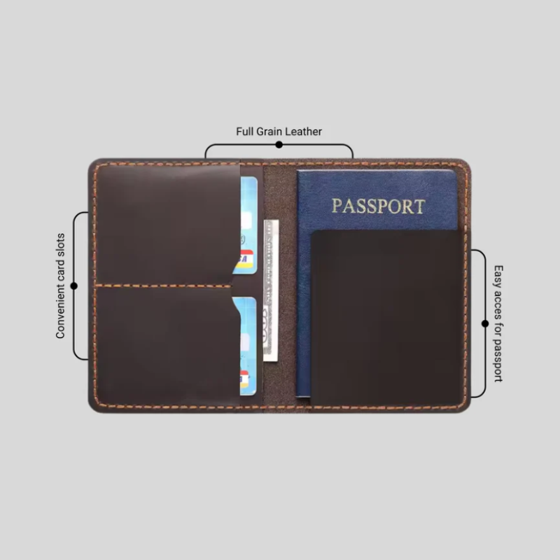 Passport, cards, notes, and boarding passes are organized into dedicated spaces that make sense in use. No excess pockets. No awkward folds. Just a layout designed to move smoothly through airports and beyond.
